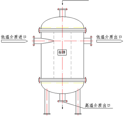 A:排污口 B:一次介質(zhì)進(jìn)口 C:溫控閥口 D:二次介質(zhì)出口 E:二次介質(zhì)進(jìn)口F:一次介質(zhì)出口 PI:壓力表口 TE:溫度計(jì)口